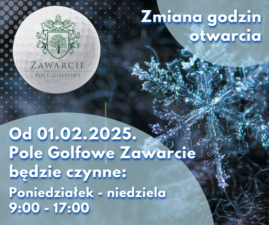 Informujemy, że od 01.02.2026. Pole Golfowe Zawarcie będzie czynne od poniedziałku do niedzieli w godzinach 9:00 – 17:00.